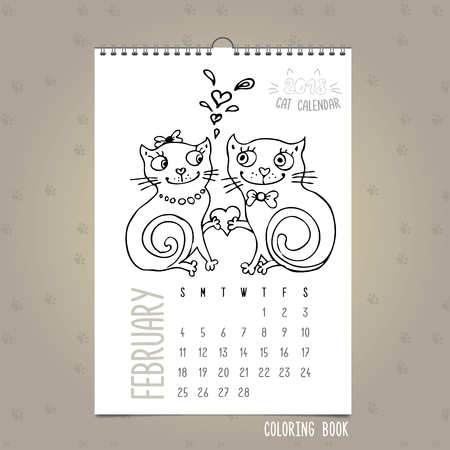 2 月の心と かわいい愛カップル猫カレンダー手描き背景の落書き ベクトル イラストのイラスト素材 ベクタ Image